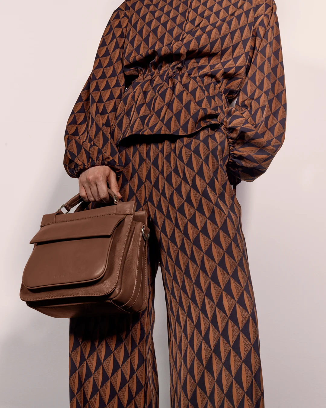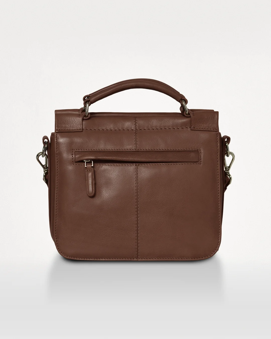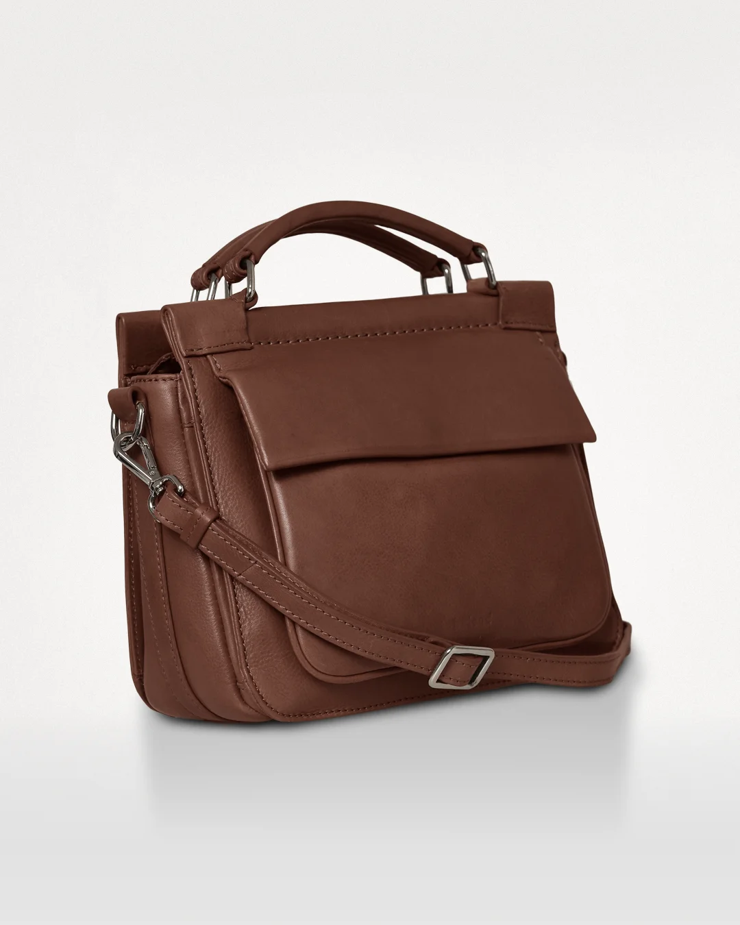 Kathleen i cognac er en af de tasker, man hurtigt tager til sig. Den mellemstore størrelse gør den ideel til hverdagen, mens de bløde linjer og det indslåede overslag giver et harmonisk og afbalanceret udtryk. Den varme cognacfarve fremhæver læderets naturlige glød og struktur og giver tasken et klassisk og tidløst præg.
