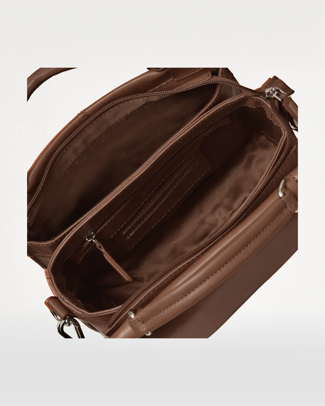 Kathleen kan bæres i håndremmen, over skulderen eller som crossbody med den justerbare og aftagelige rem.